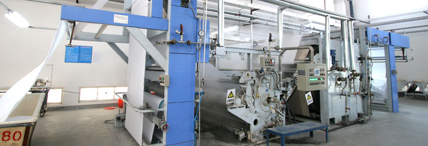 The company is equipped with Osthoff singeing machine, Red Flag desizing machine, cold batch machine, scouring-bleaching machine, mercerizing machine, washing machine, pad dyeing machine; Monfongs setting machine, Zhenngzhou pre-shrinking machine, Kuster evenness calenders, Taiwan Yuchen automatic feeding system, etc. The capacity of dyed and bleached fabric is 60 million meters per year.